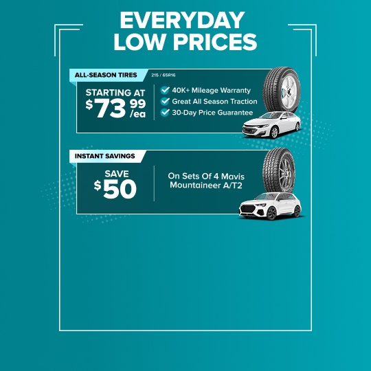 Mavis buys tires at national scale, which allows us to secure better pricing from manufacturers and pass those savings directly to customers. We constantly move tires across our national network, so you get same-day or next-day installation at most locations. Our goal is transparent, everyday low prices on high-quality tires and services.
